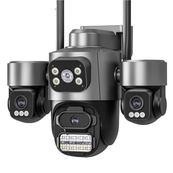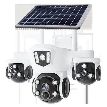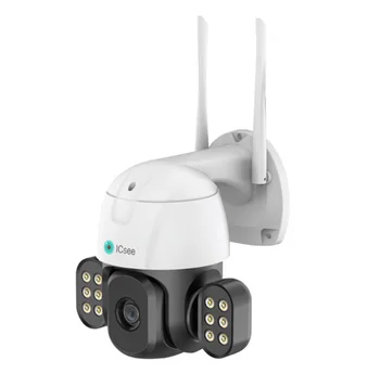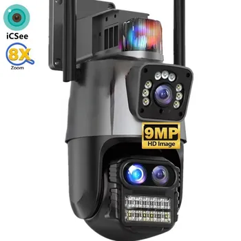 • ICsee Outdoor NVR Wireless IP PTZ CCTV 9MP 4K Three Lens Dual Screen 8X Zoom CCTV Camera Two-Way Audio Night Vision WiFi